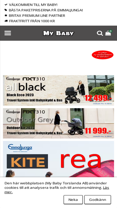 82%Välkommen till My Baby! My Baby är en Emmaljunga Certified Partner och säljer alla deras barnvagnar, tillbehör och reservdelar. Vi är även en Britax Diamond återförsäljare där du hittar Britax exklusiva sortiment av barnvagnar och bilstolar. Vi är stora på BeSafe bilbarnstolar och Voksi Åkpåsar. Vi säljer barnvagnar, bilstolar, barnmatstolar, barnkläder, presenter och en massa annat du behöver när barnen är små Hos oss hittar du varumärken som: Axkid, Babybjörn, Babyzen, BeSafe, Crescent, Ergobaby, Rätt Start, Stokke, Teddykompaniet, Voksi med flera. Välkommen till vår fysiska butik i Torslanda utanför Göteborg eller till mybaby.se!