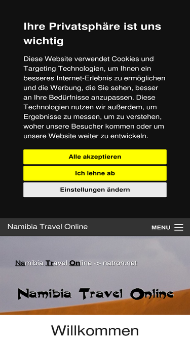 96%eine zusammenfassung des tourismusangebots in namibia (suedwest-afrika) mit allem, was sie für ihren urlaub brauchen: reiseveranstalter, unterkünfte, mietwagen, safariangebote, photos, strassenkarten zum ausdrucken und vieles vieles mehr.