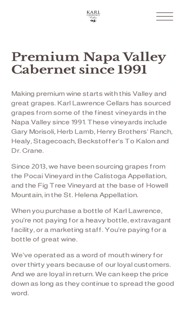 80%Karl Lawrence Cellars is an independent winery specializing in premium Napa Valley Cabernet Sauvignon.
