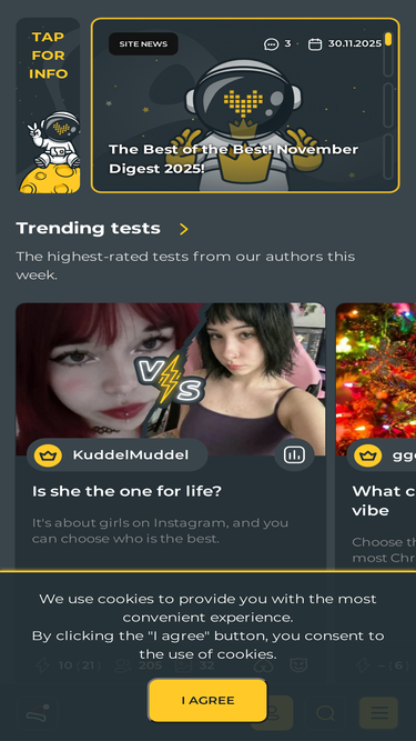 81%A portal with fun and engaging tests, quizzes, and tournaments to test knowledge, tastes, and personality traits, offering interaction and entertainment.