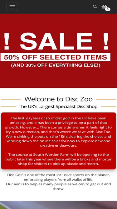79%Disc Zoo is the UK's foremost supplier of high quality disc golf equipment and course design services. Huge range of discs, bags, clothing and accessories.