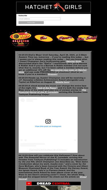 100%free stories by champion mojo storyteller joe r. lansdale posted weekly