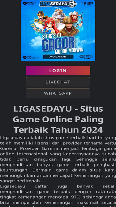 ligasedayu adalah situs agen judi online terbaik resmi di indonesia yang menghadirkan banyak jenis permainan terlengkap seperti judi bola, casino dan slot online dengan pelayanan 24 jam.