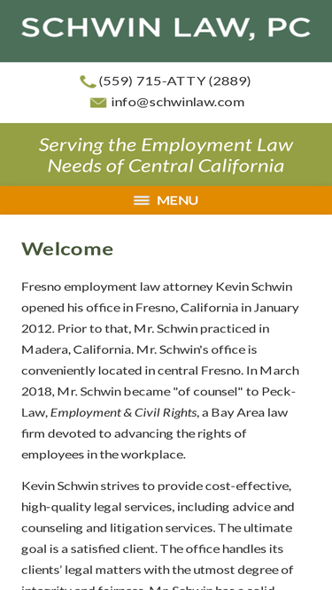 90%from their office in madera, california, the lawyers at schwin law, pc serve clients throughout central california, the san joaquin valley, merced, madera, and fresno counties in the areas of employment law and general civil practice.
