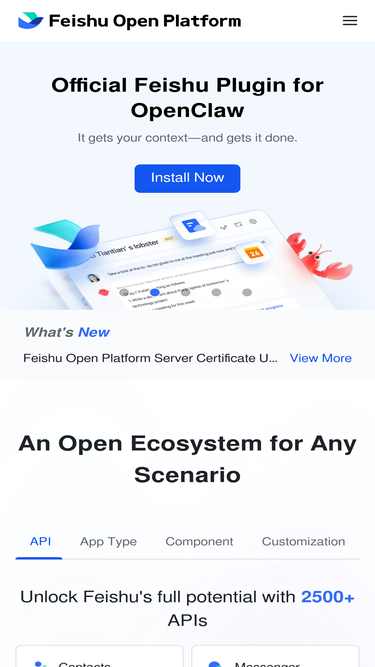 87%Develop applications agilely and efficiently settle in service providers. Feishu Open Platform is committed to helping enterprises grow with advanced collaborative office concepts and products, and helping enterprises create a pleasant and efficient exclusive office platform.