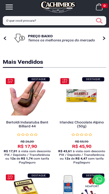 99%Compre cachimbos e charutos em nossa tabacaria online. Grande variedade de fumos para cachimbos, cigarros, isqueiros, tabacos para enrolar e muito mais, compre com quem entende do assunto.