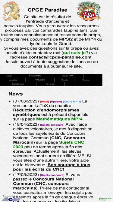 100%Ce site contient un ensemble de documents utiles en CPGE scientifique filière MPSI/MP, en majorité issus du lycée Louis-le-Grand.