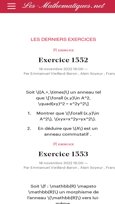 les-mathematiques.net se classe au 4e rang des sites les plus similaires de cahier-de-prepa.fr et groupe-reussite.fr se place au 5e rang. les-mathematiques.netet groupe-reussite.fr ont reçu 202.3K visites et 229.9K visites en novembre 2025, respectivement.