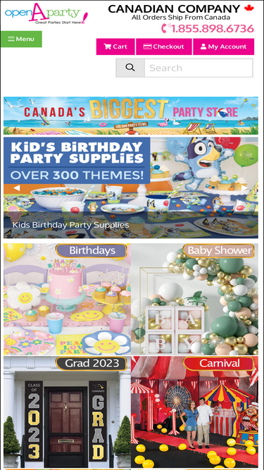 94%open a party has over 60,000 party items covering every party theme and occasion. giant selection of tableware, candy, crafts, favours and balloons.