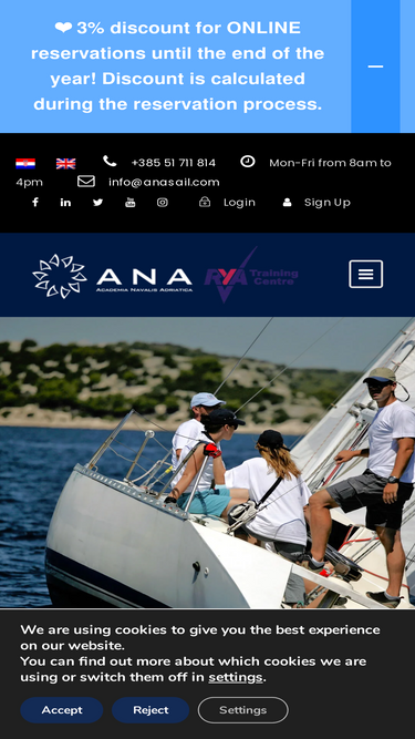 71%ANA Sailing School (Academia Navalis Adriatica, Adriatic Nautical Academy) je međunarodna škola jedrenja i nautički centar u Hrvatskoj koju je uspješno pohađalo više od 16 000 polaznika.