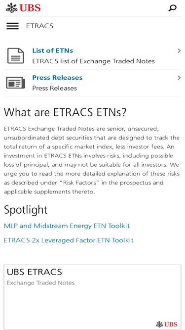 82%etracs etns are ubs investment products, offering access to markets and strategies that otherwise may not be readily available to investors