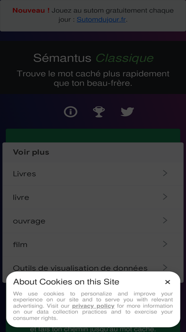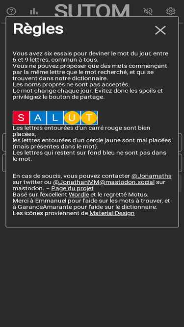 86%Arriverez-vous à deviner le mot du jour de Sutom ? Jouez avec vos amis au meilleur jeu de puzzle de mots ! Modes de jeu : Tusmo, Wordle ou Motus 🚀