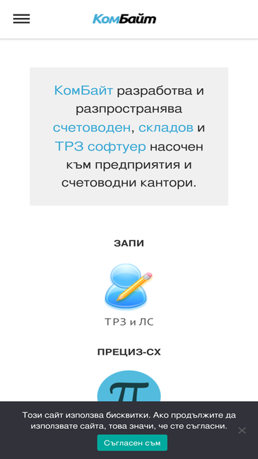 комбайт е фирма с традиции в разработката на счетоводни, складови и трз програми. популярни продукти на фирмата са прециз-сх и запи.
