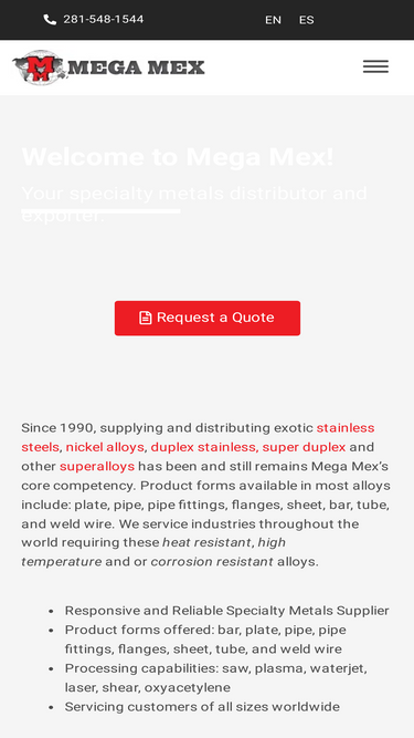 92%soluciones integrales para la industria. expertos en metales y aleaciones especiales como acero inoxidable, placa de acero, monel y más. ¡conócenos!