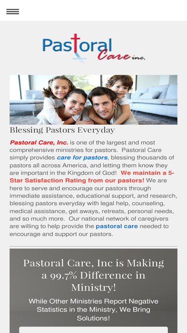 74%One of the Three-Fold Ministry approach includes research. Surveys helps us know the demands, stressors, and needs of the ministry. Pastors and spouses often do not have a friend to lean on to share their feelings and hurts. Take a few minutes to tell us how we can help you in your ministry. I believe God never intended for us to walk this journey alone. You have Pastoral Care.