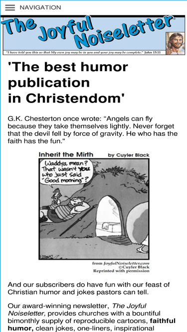 85%The Joyful Noiseletter is a voice laughing in the wilderness. Our modest aim is to recapture the spirit of joy, humor, unity and healing power of the early Christians.