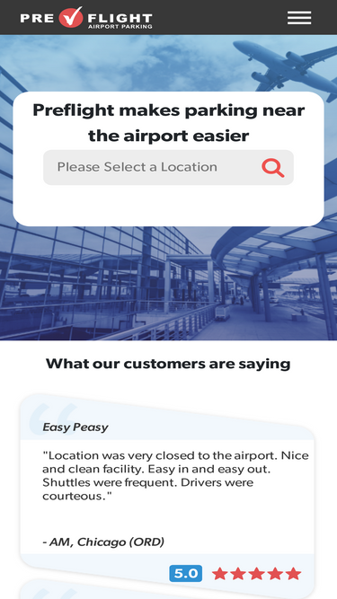 77%PreFlight Airport Parking makes your trip easy with free shuttles from your car to your terminal. Learn more about how PreFlight can help you!
