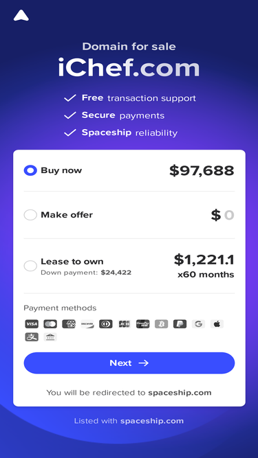 71%iChef.com is for sale on Spaceship. Secure checkout and quick transfer. No hidden fees.