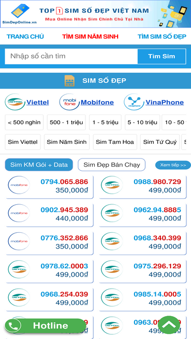 75%Sim lục quý giữa mạng Viettel, Mobi, Vina,... đủ các đầu số, giá siêu rẻ. Đặt mua online tiện lợi, đăng ký chính chủ, nhận sim tại nhà 24/7.