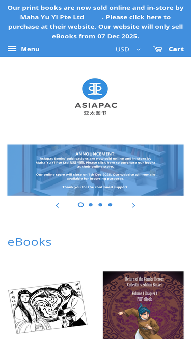 100%What types of books do you publish? Asiapac Books publishes mainly comic books and illustrated novels in many genres, including philosophy, history, literature and culture. We have a strong focus on Asian content, but publish non-Asian themes as well. Where can I buy your books? You can purchase our books online