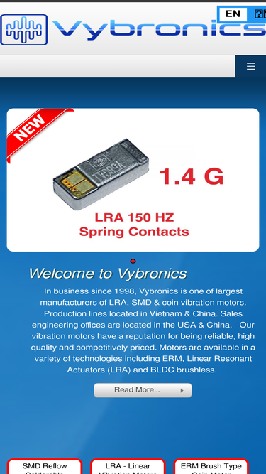 87%Vybronics is a China / Vietnam based manufacturer of coin and ERM vibration motors in LRA, SMD, SMT BLDC technologies. Certified SGS ISO 9001:2015