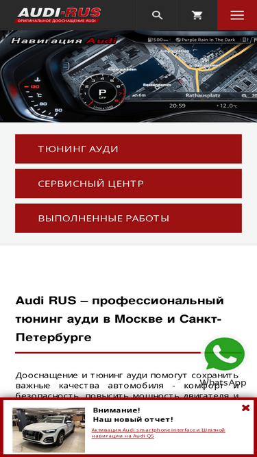 Сервисный центр Audi RUS выполняет комплекс работ по дооснащению автомобилей Ауди. В данном разделе размещаются новости компании и интернет-магазина.