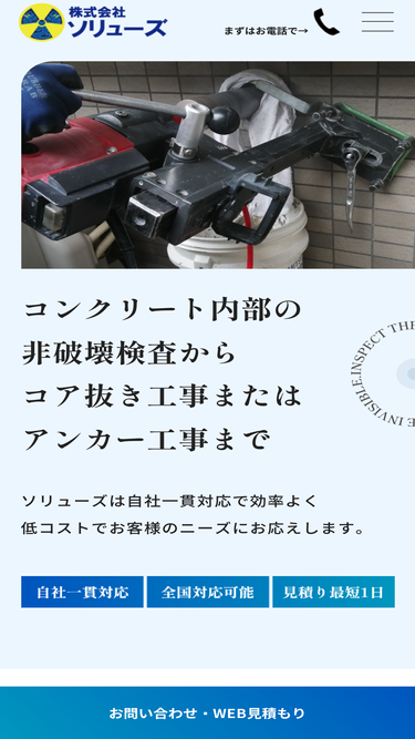 線レントゲン内部探査や電磁波レーダー内部探査によるコンクリートの非破壊検査で内部の鉄筋や電線を調べます。その他アンカー工事、ダイヤモンドコア穿孔(コア抜き)工事、あと施工引張試験もすべて自社施工で安心な株式会社ソリューズへお任せください。
