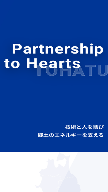 54%TOHATUの「TOHATU CORPORATE BRAND」ページです。TOHATUは"高い技術力で"電源設備を「つくり」「まもる」,東北電力とともに郷土のエネルギーを支え続ける総合エンジニアリング企業です。
