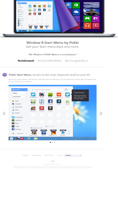77%Pokki is a free Windows 8 Start Menu. Pokki makes it easy to search, access and discover apps, files, settings and power options on your PC.