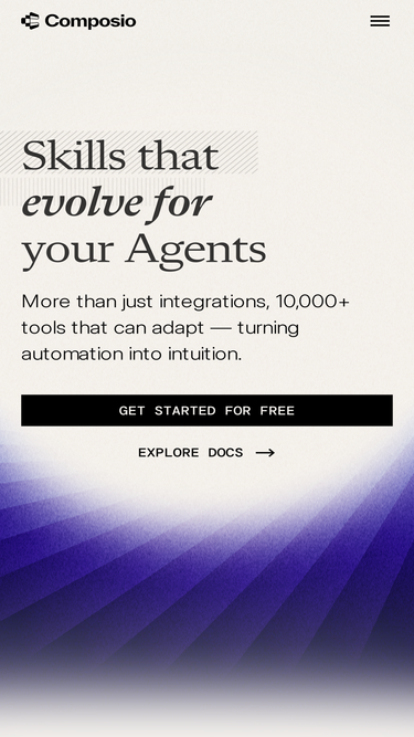 95%Build agents that do more. Composio gives you APIs, SDKs, and prebuilt integrations to let your AI agents interact with apps like Slack, Gmail, HubSpot, GitHub and beyond.