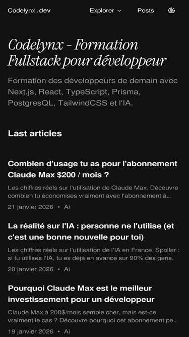 84%Découvrez tous les articles et tutoriels sur le développement web, React, JavaScript et plus encore.