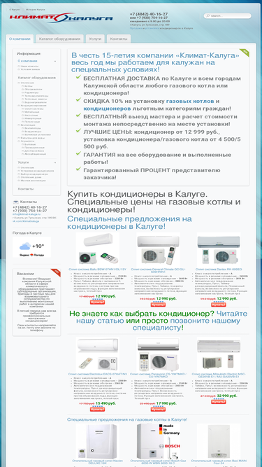 89%На сайте представлен большой выбор кондиционеров, сплит-систем, вентиляции, чиллеров, фанкойлов, очистителей, увлажнителей и теплового оборудования от различных производителей по выгодным ценам. Калуга Сити магазин климатического оборудования в Калуге и области.