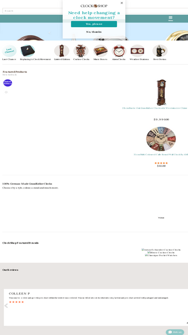 87%Have a clock or watch related question? With over 45 years of experience we are here to help! Please email or call 800-334-0135.