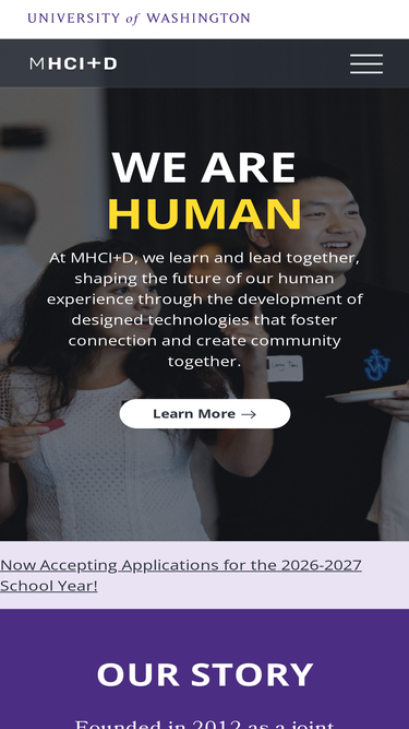 84%Now Accepting Applications for the 2026-2027 School Year! Who we are MHCI+D is where bold innovation meets human connection. We are a community of designers, technologists, researchers and makers, committed to innovation at the intersection of courage and curiosity. We learn and lead together, creating a dynamic learning environment designed for rich exploration and thoughtful risk-taking that encourages inquiry and discovery. WHAT WE DO At MHCI+D we learn, we lead