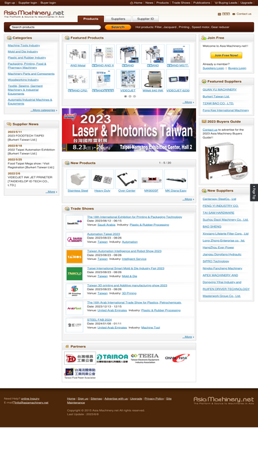 100%asiamachinery.net is a interactive b2b e-platform and source for the global machinery industry; offering machinery related information and tradeshows to a global community of over 200, 000 buyers