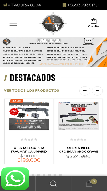 67%Artículos para caza y defensa personal. Hacemos envíos a todo Chile. Nuestras marcas: Umarex, Walther, Wiley X y GLOCK