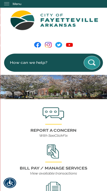 52%official website for the city of fayetteville, arkansas. learn about all departments, city services and events. pay utility bills, report concerns, apply for permits, sign up for notifications, view calendars of events and meetings, and much more.