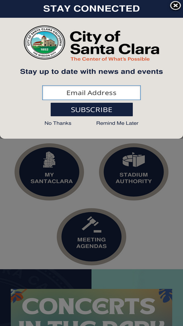 51%City of Santa Clara, truly The Center of What’s Possible. Santa Clara, home to Santa Clara University, California’s Great America Theme Park, and Levi’s Stadium along with the San Francisco 49ers.