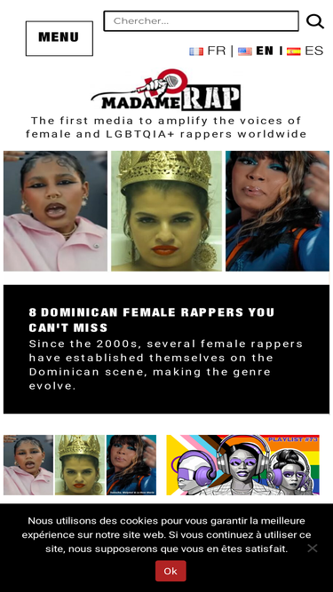 77%Madame Rap est le premier média en France dédié aux femmes dans le hip hop. Son but, visibiliser les rappeuses et les arts de rue au féminin, mais aussi le rap queer et les LGBT+ dans le hip hop et les discours de rappeurs "hors normes" ou peu entendus !