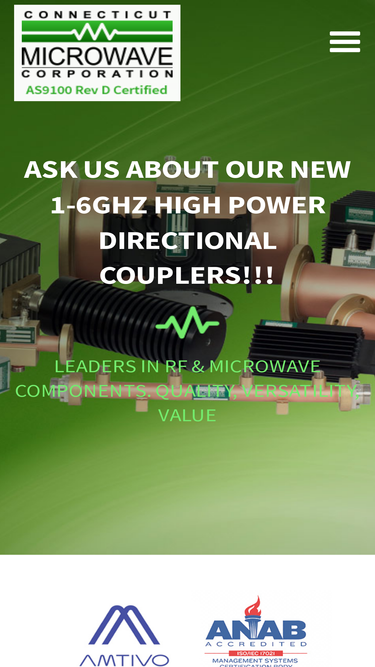 100%Connecticut Microwave Corporation specializes in RF and microwave components such as coaxial and waveguide directional couplers and filters.