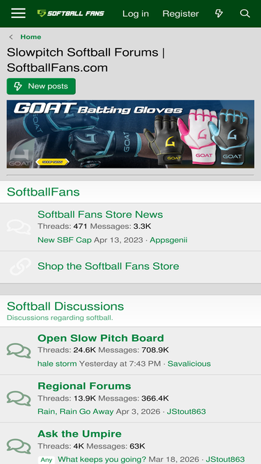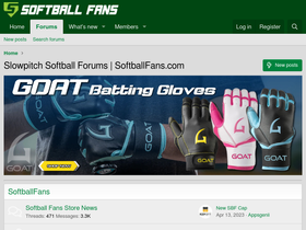 68%Welcome to Softballfans.com online softball forum! Here you can discuss everything from softball associations to softball manufacturers. There's something for everyone to talk about in our forums.