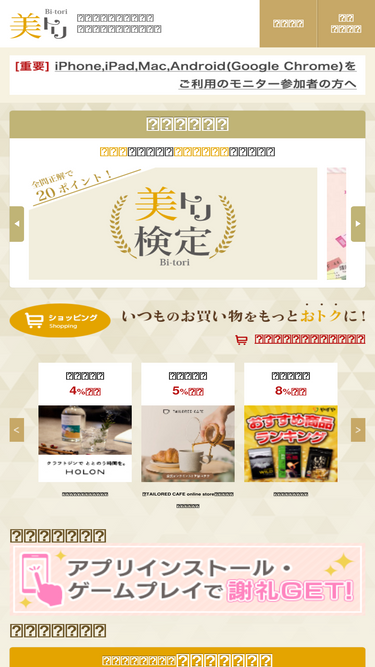 76%ビサーチ <bisearch>は、化粧品やエステを体験し、体験後にお店の雰囲気や使い心地などのアンケートを提出することで謝礼がもらえるサービスです。化粧品やエステ会社は、美容に興味のあるモニターさんのアンケートデータを集めることで、サービス品質の向上につながるため、調査費用を出して美容モニターを実施します。その謝礼がモニターさんに支払われるので安心できるサービスです。