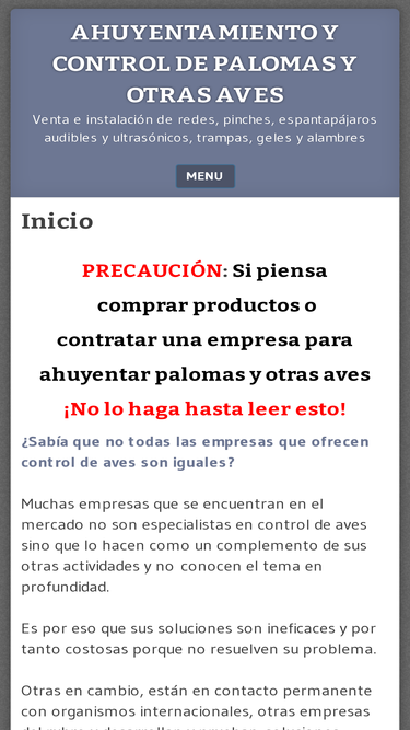 Blog sobre problemas provocados por las plagas de aves y los elementos y técnicas disponibles para su control.