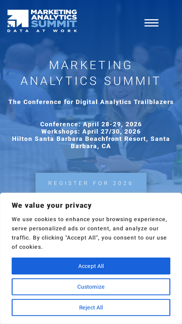 42%Register early for Marketing Analytics Summit 2026 in Santa Barbara and secure the best price for conference and workshops.
