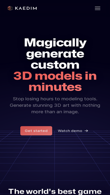 88%AI-powered 3D asset creation service delivering fast, production-ready 3D assets. Scale 3D pipelines without hiring, accelerate 3D game art production, and reduce 3D asset costs by up to 90%.