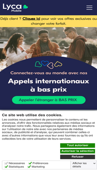 85%Lyca Mobile France propose des appels nationaux et internationaux à bas prix. Commandez une carte SIM gratuite et appelez le monde à moindre coût grâce aux dernières offres SIM et aux forfaits SIM uniquement.