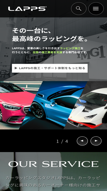 81%カーラッピングするなら施工実績延べ10万台、創業45年のLAPPSへ。圧倒的な経験と知識による高品質な施工から、3M製フィルムの販売、未経験からプロを目指せるビジネス講習会まで、カーラッピングの全てがここに。