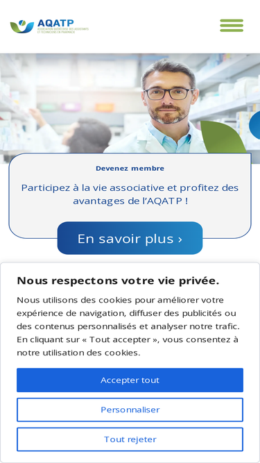 100%Adhésion régulière Tarif : 85 $ /an (+ taxes)   Sont admissibles à devenir membres réguliers de l’Association, le personnel de soutien en pharmacie (diplômé ou non), les assistants techniques en pharmacie et les techniciens en pharmacie œuvrant en établissement de santé ou dans toute autre institution relevant du Ministère de la Santé et des Services sociaux du Québec, dans les pharmacies d’officine, compagnie pharmaceutique, Centre Universitaire et/ou toute personne détenant un diplôme d’études professionnelles en Assistance Technique en Pharmacie, un diplôme d'études collégiales en technique de pharmacie ou expérience équivalente et qui acquitte la cotisation fixée par le conseil d’administration. Votre statut / profession Choisir une optionATPTPEffacer Adhésion régulière Vos informations Votre prénom * Votre nom de famille * Courriel * Votre profession Assistant technique en pharmacie (ATP)Personnel de soutien technique (PST) – non diplôméAssistant technique sénior en pharmacie (ATSP)Technicien en pharmacie (TP) Si applicable, veuillez téléverser une copie de votre diplôme. Déposer un fichier ici ou cliquer pour télécharger Choisir un fichier Taille de fichier maximale : 5.24MB Quel sont vos champs d'expertise * DVCC DVEP Allaitement Orthopédie Stomie Préparation magistrale Stérile; (spécifiez)Préparation magistrale Stérile; (spécifiez) Préparation magistrale non stérile (catégorie 1) Préparation magistrale non stérile (catégorie 2)