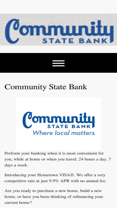100%We invest in the region because this is our home too. Community State Bank is big enough to offer what the national banks do but small enough to care about you.