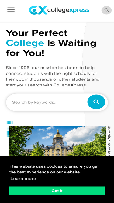 CollegeXpress can help you find colleges that fit. Sign up now to access top search tools, scholarship contests, expert advice, and other free resources!